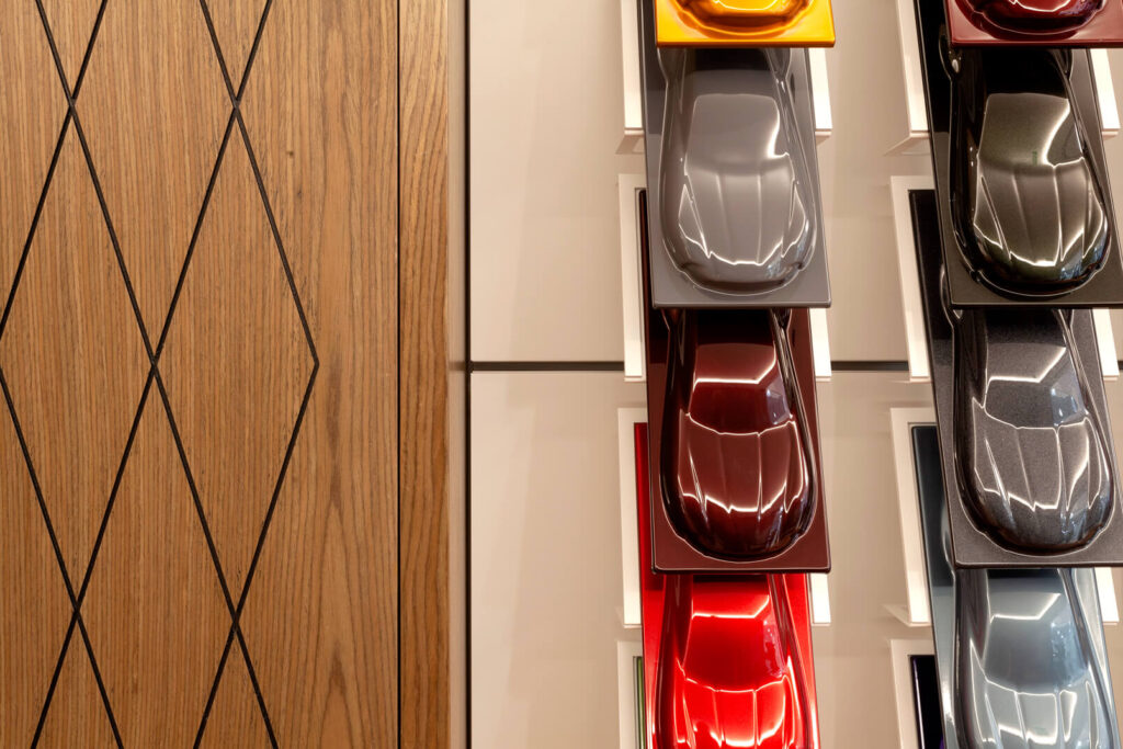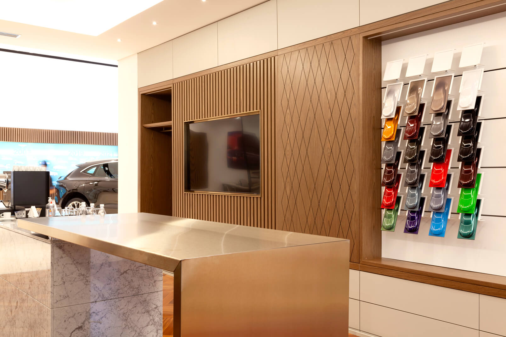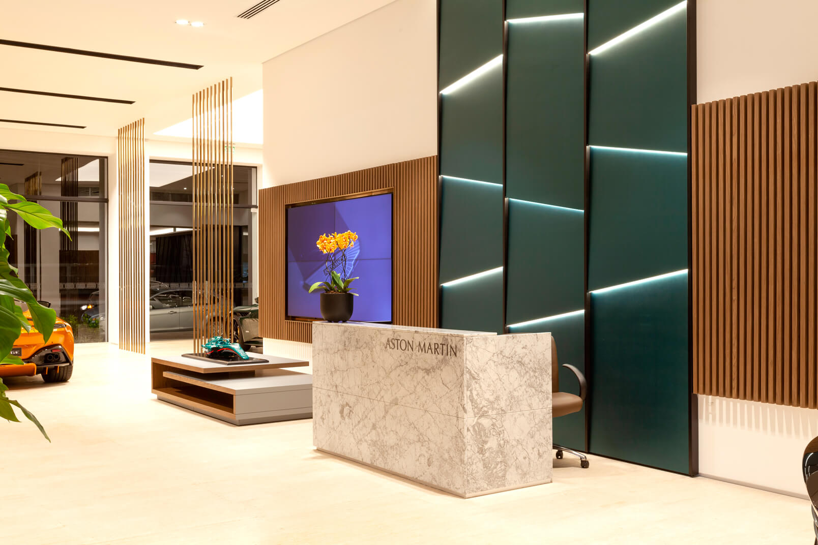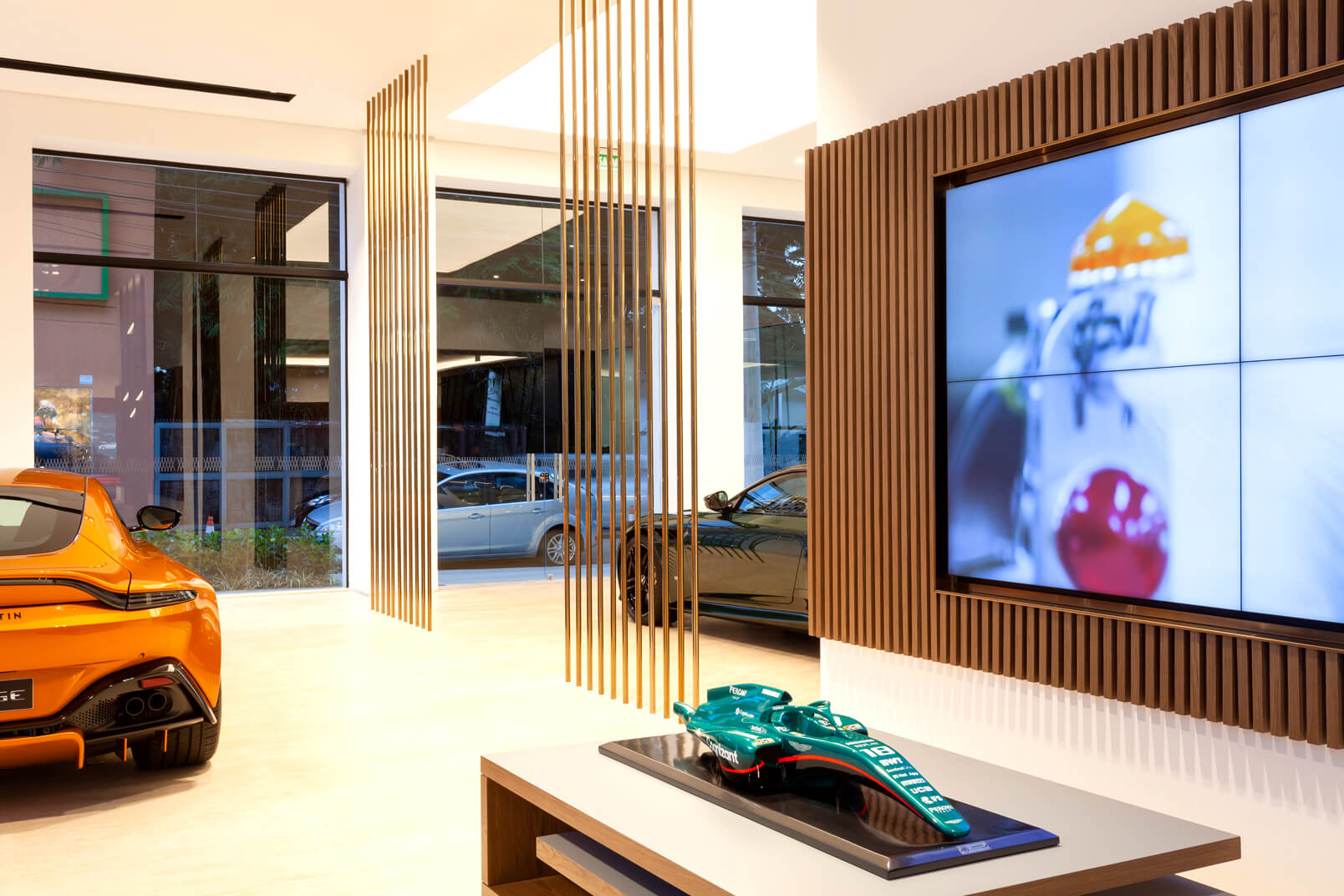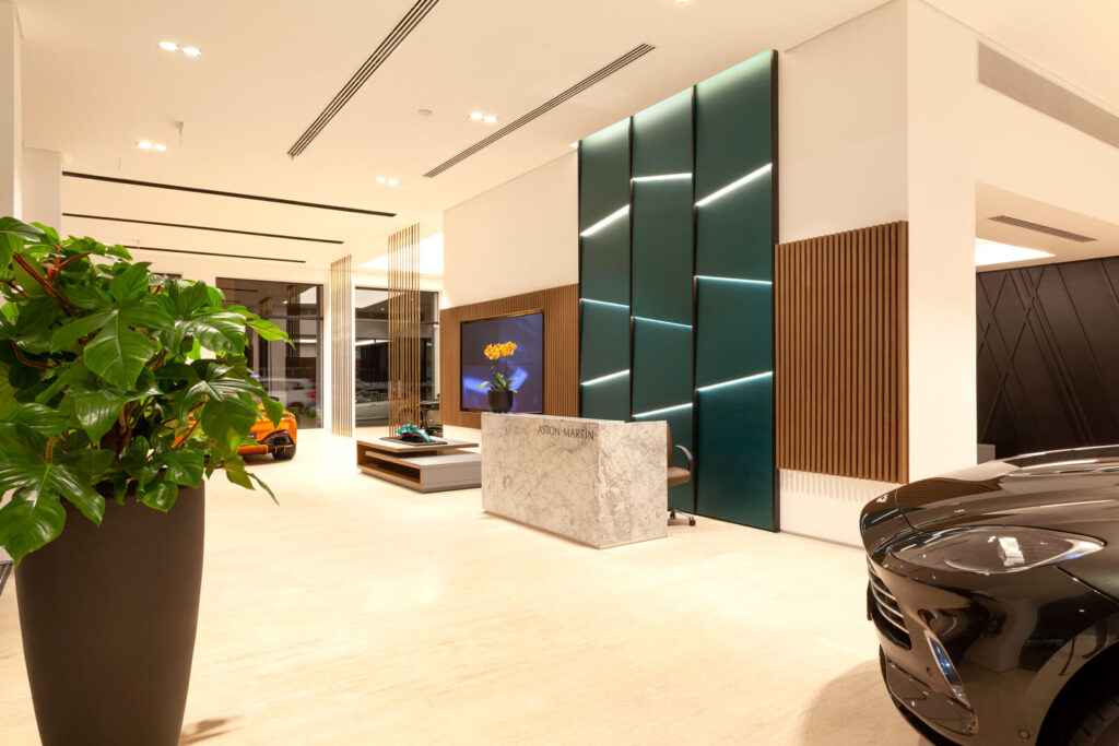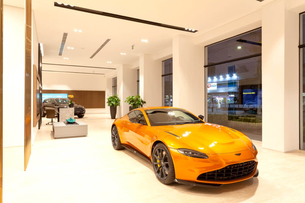 Com projeto moderno e tecnológico, segundo padrão internacional, destaca o carro como joia, com materiais britânicos, acabamentos de alto padrão e iluminação decorativa que valoriza a fachada envidraçada.