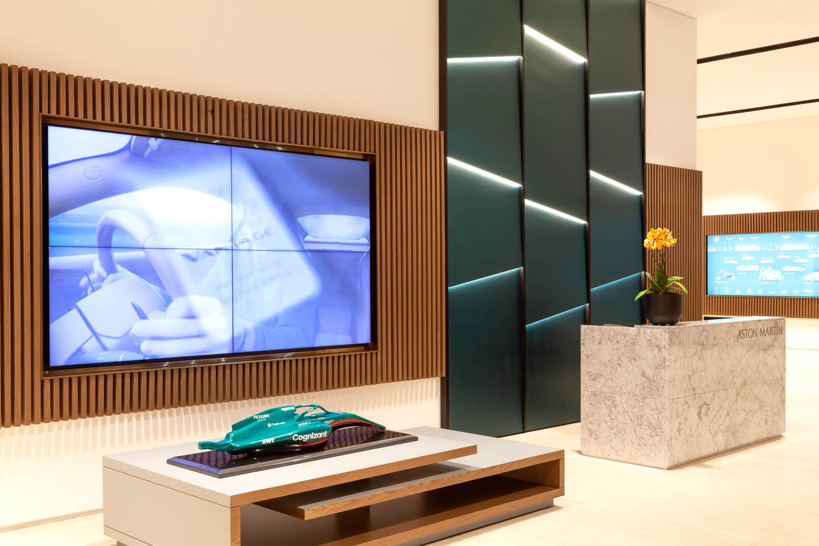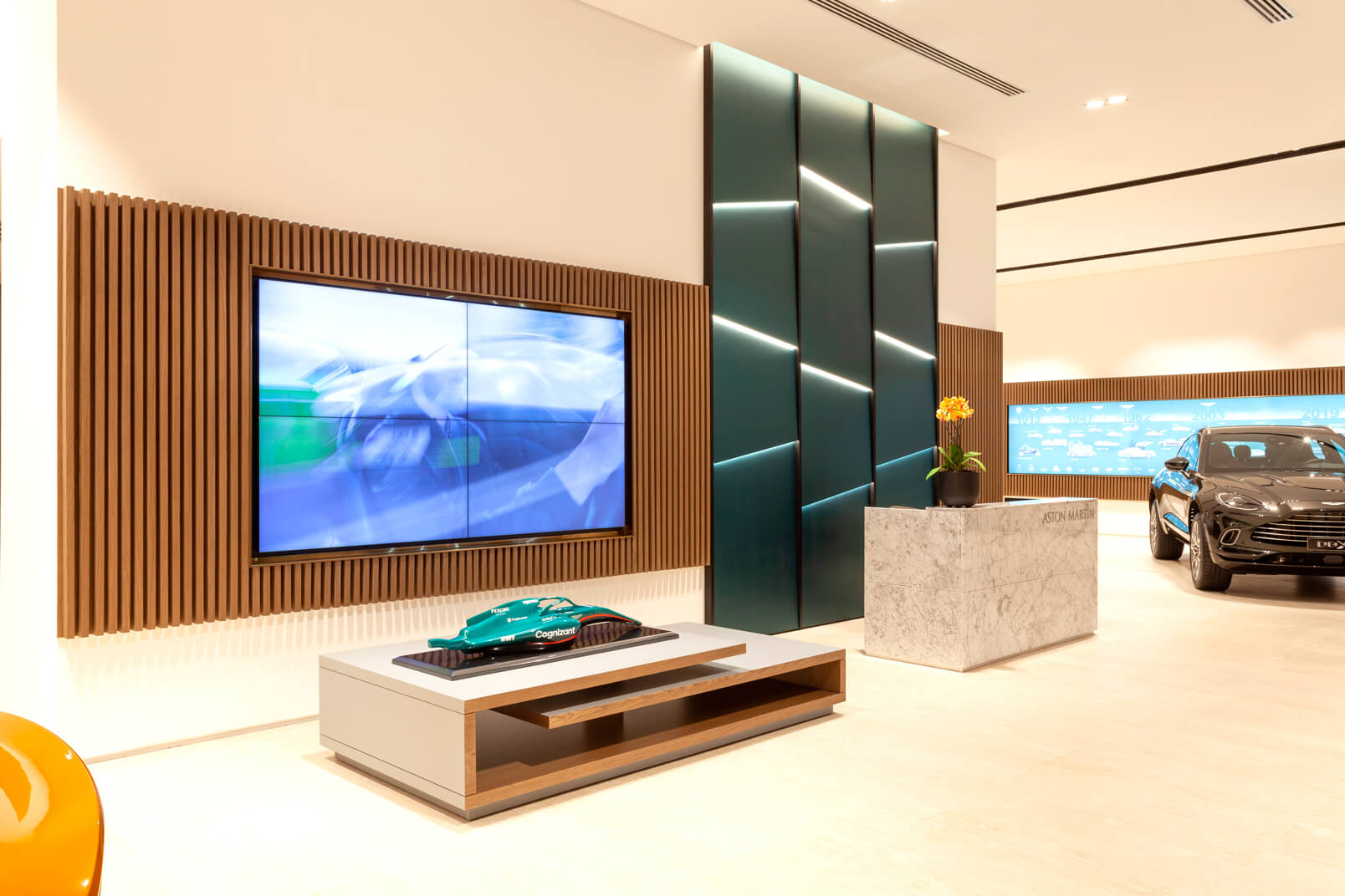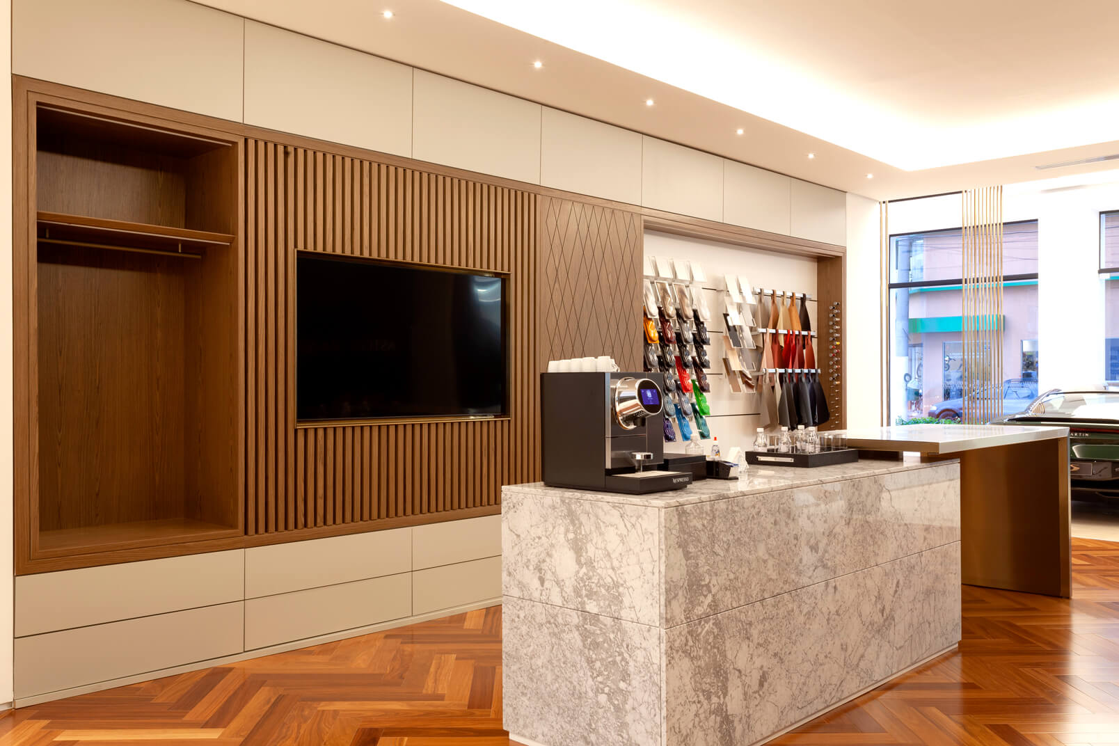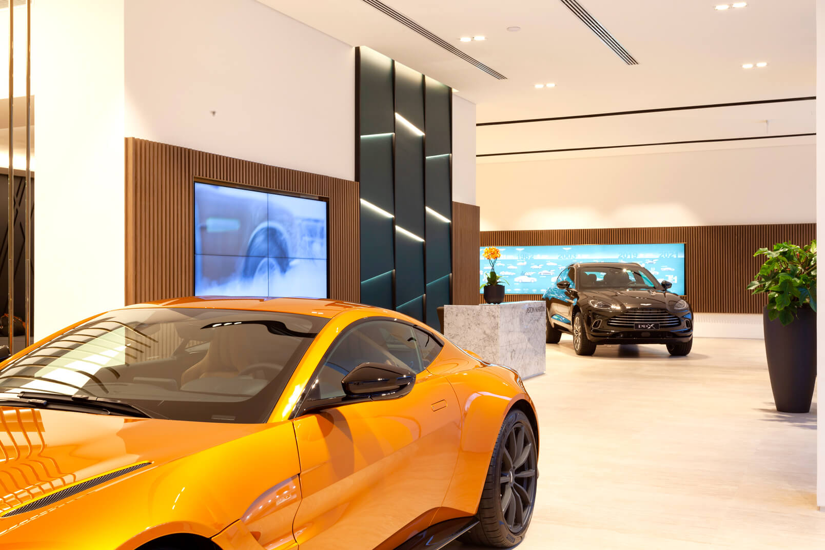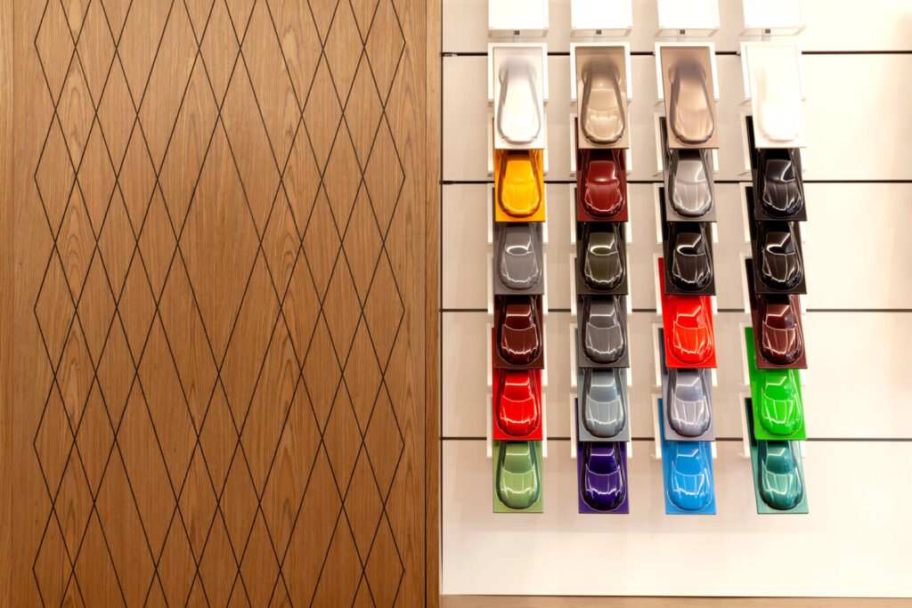 Com projeto moderno e tecnológico, segundo padrão internacional, destaca o carro como joia, com materiais britânicos, acabamentos de alto padrão e iluminação decorativa que valoriza a fachada envidraçada.