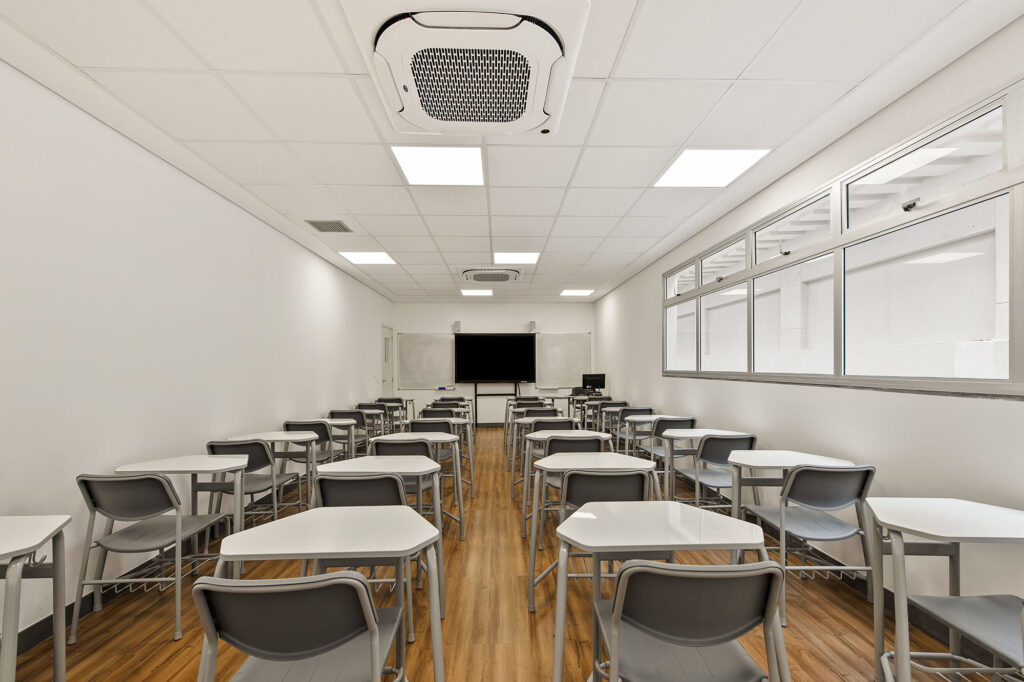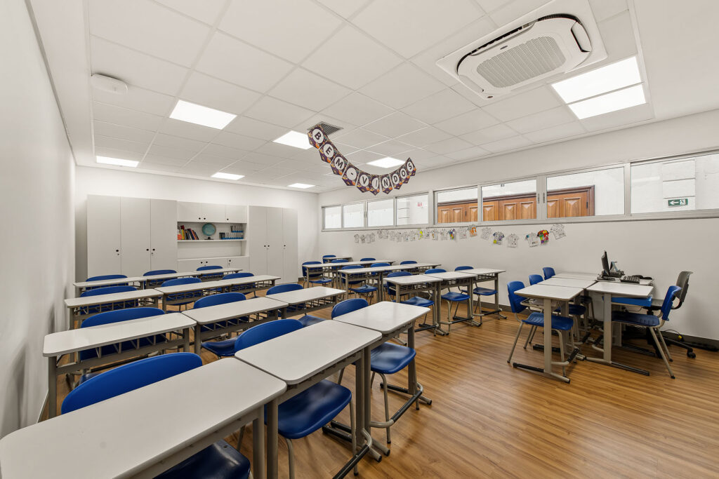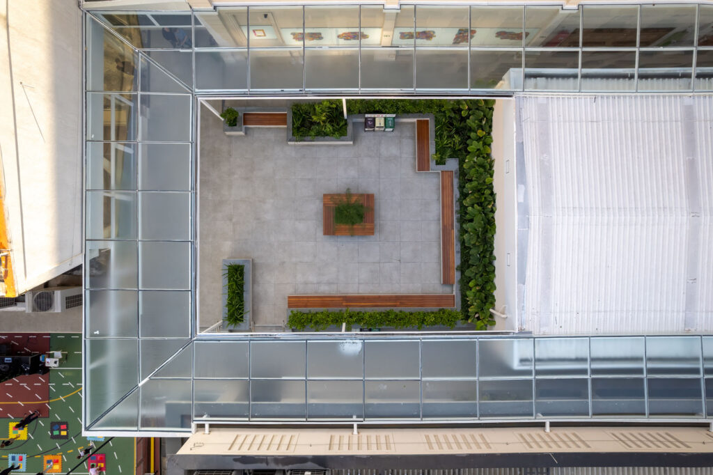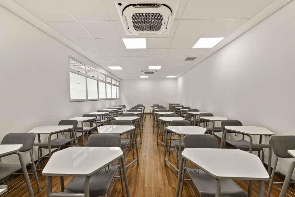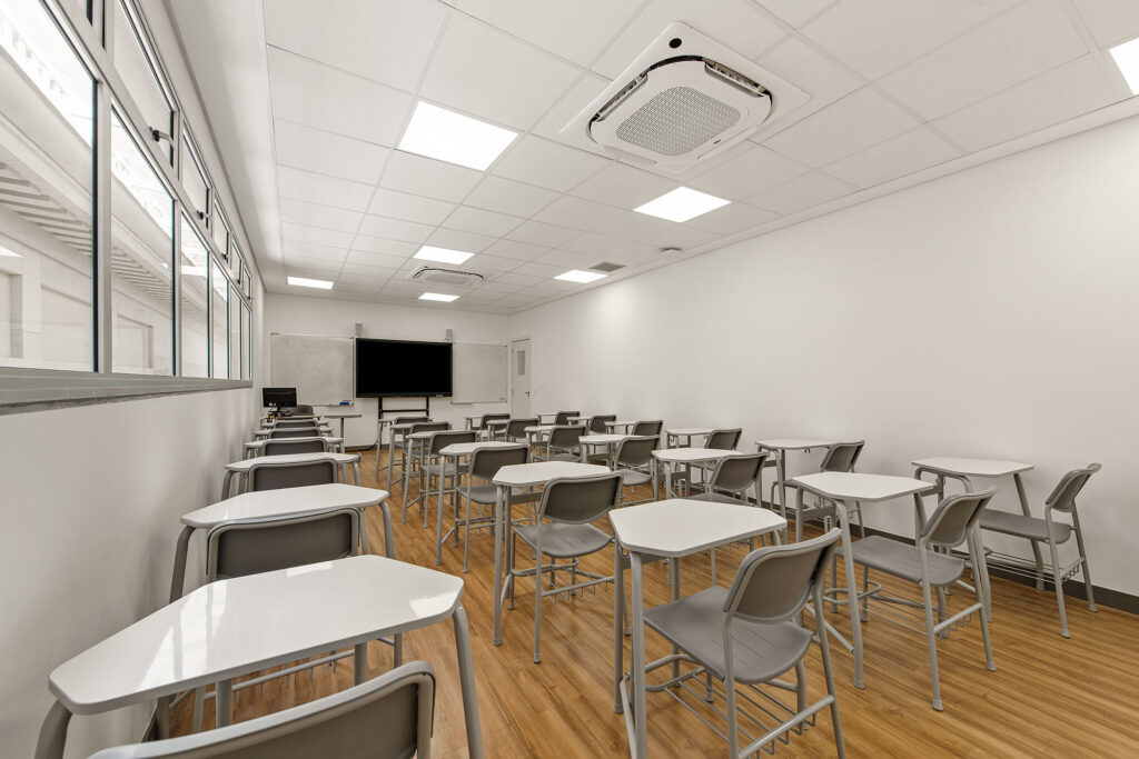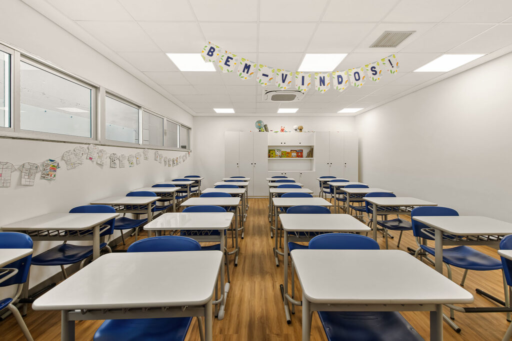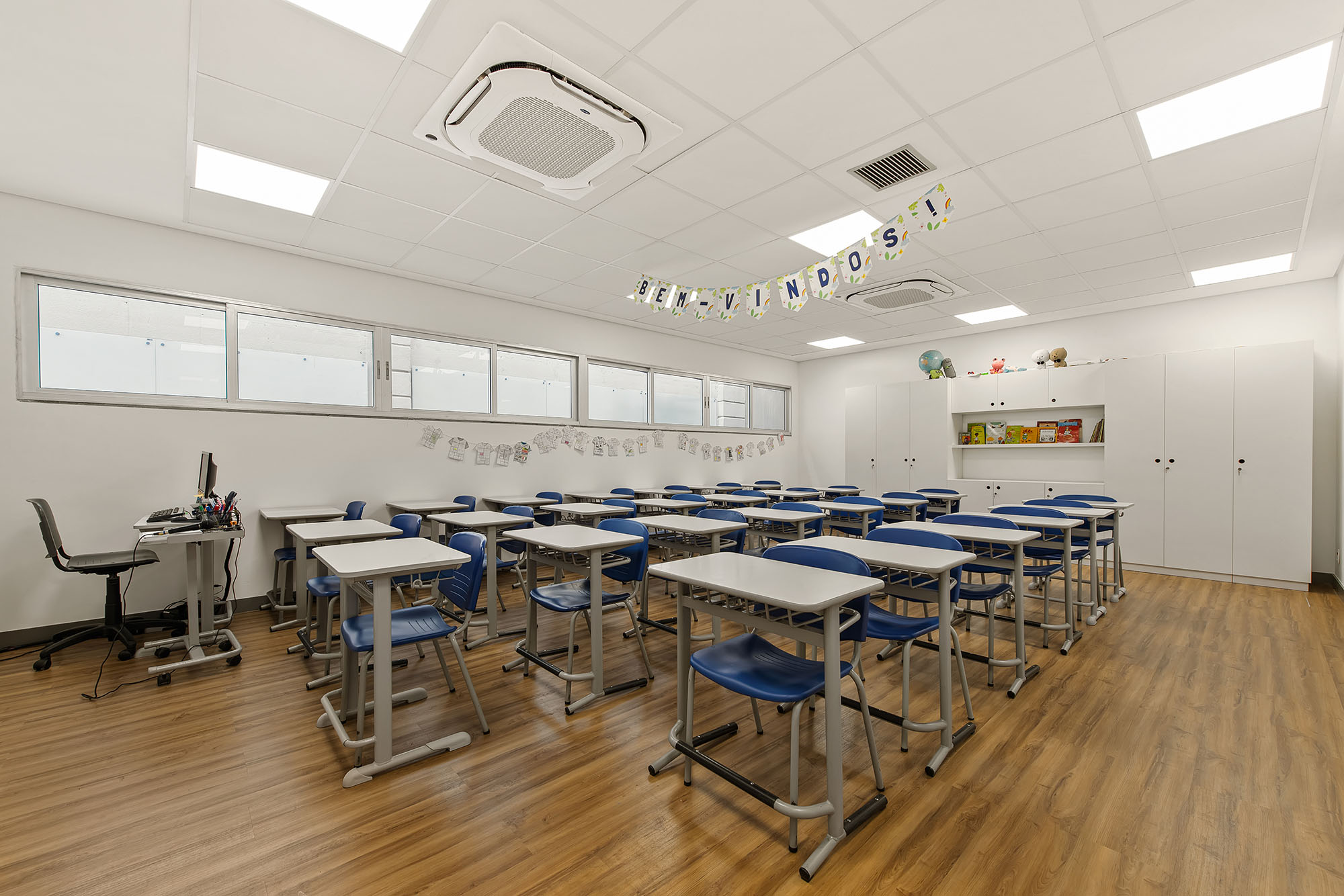 Foi construída uma nova laje, em steel deck, com edifício com novas salas de aulas e pátio aberto com área de lazer.