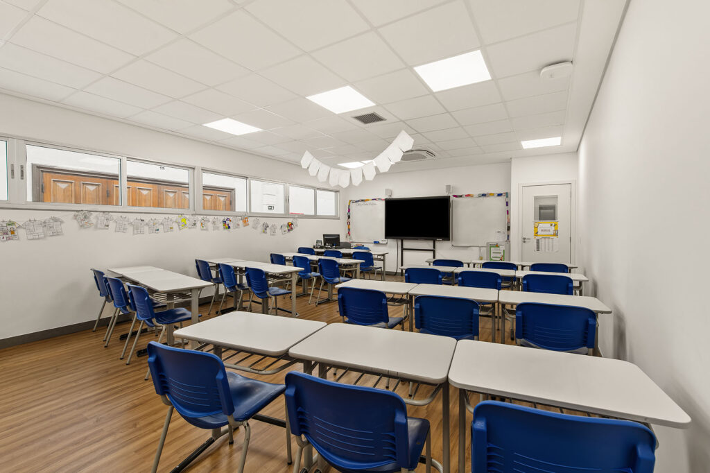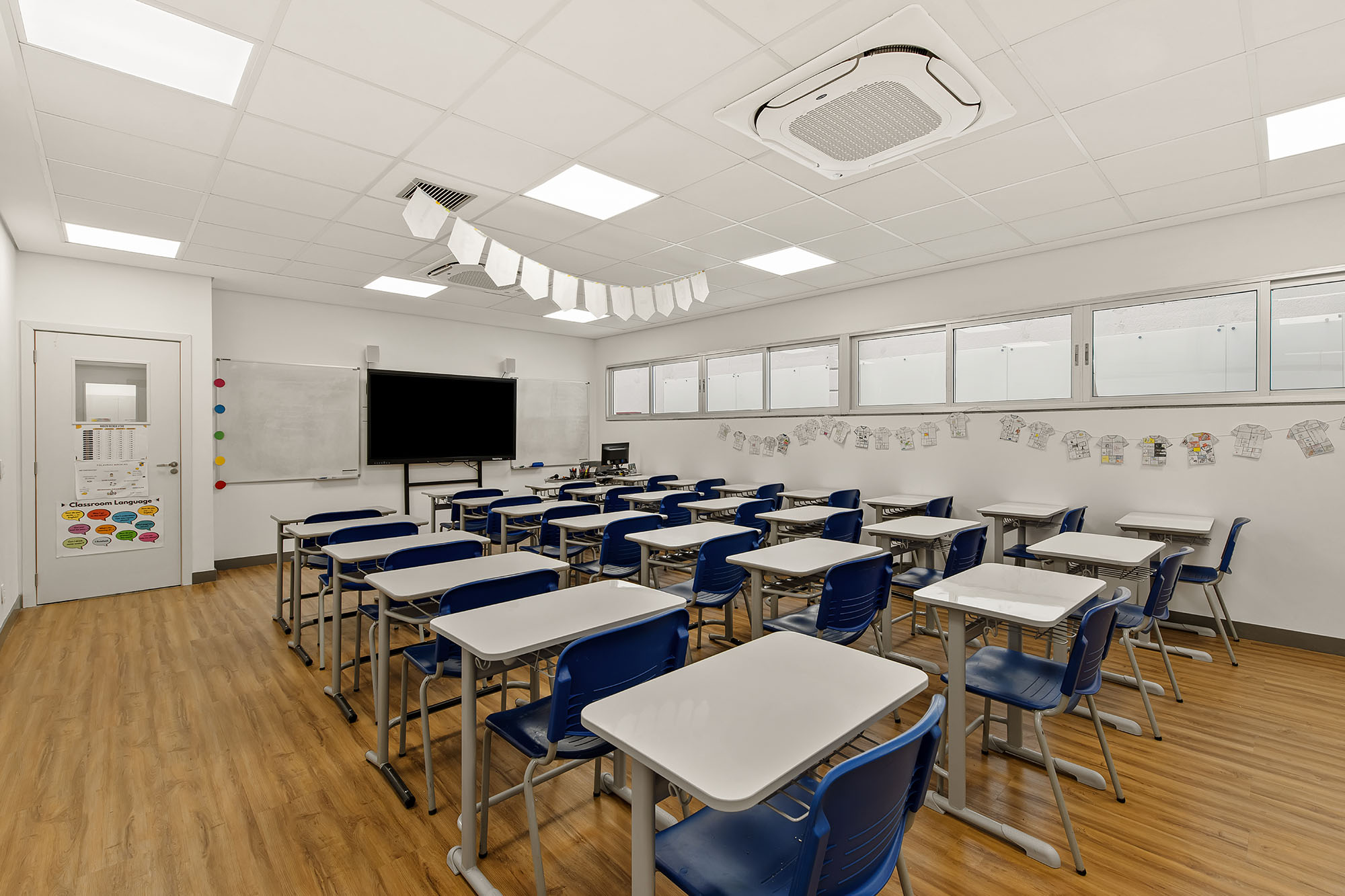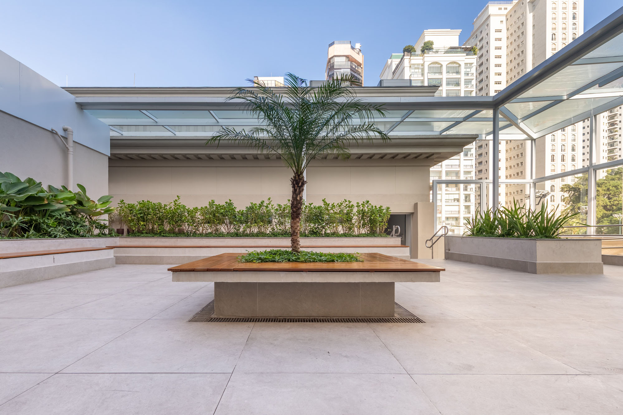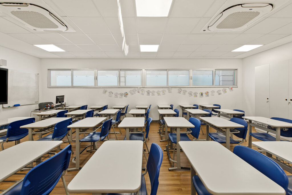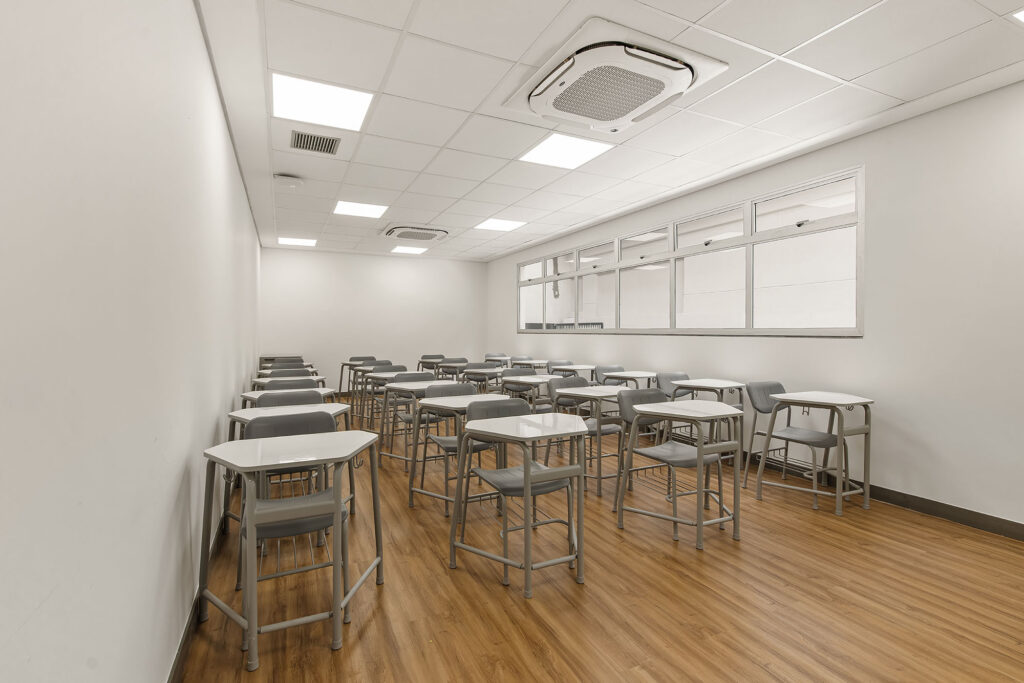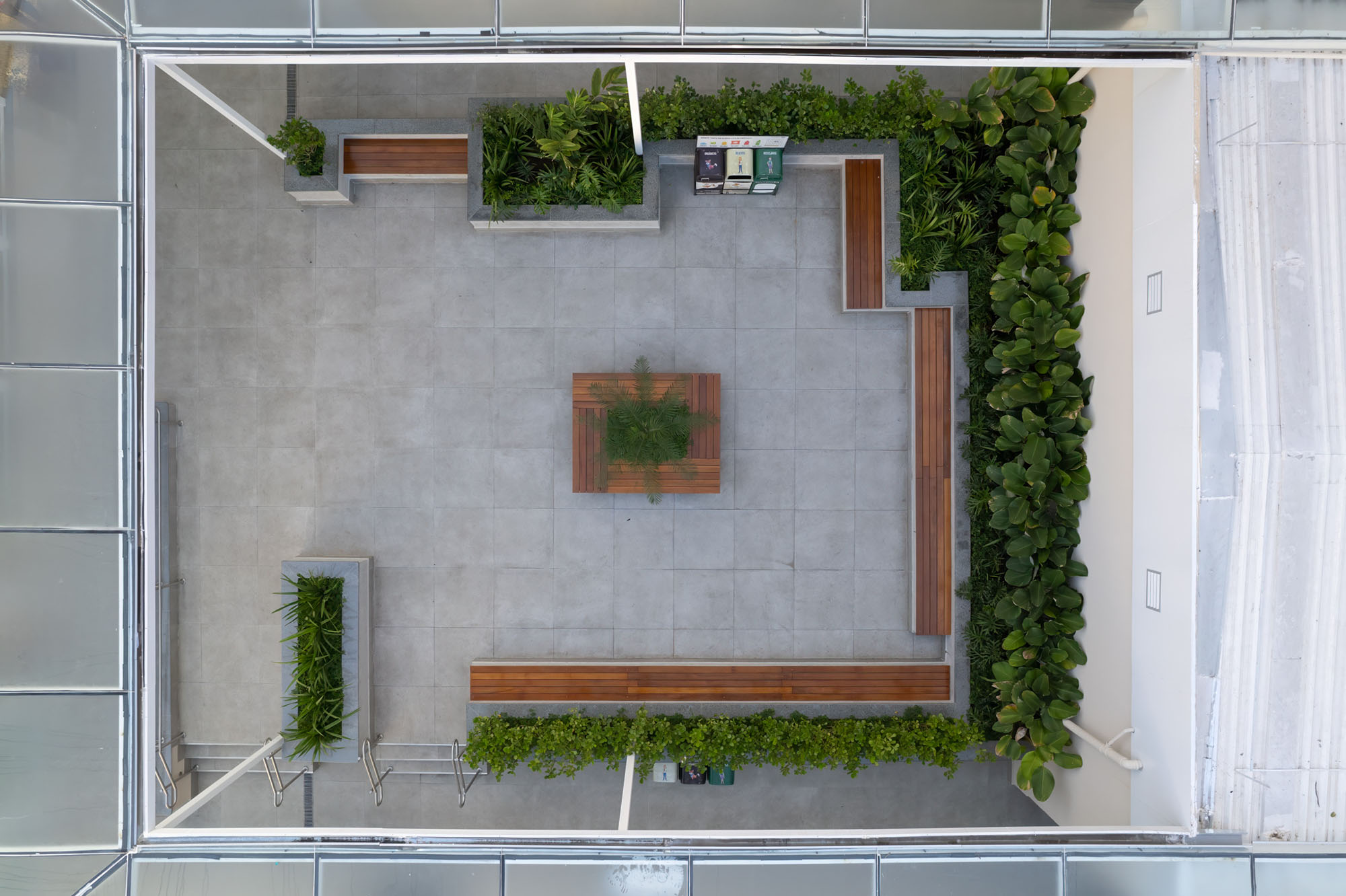 Foi construída uma nova laje, em steel deck, com edifício com novas salas de aulas e pátio aberto com área de lazer.