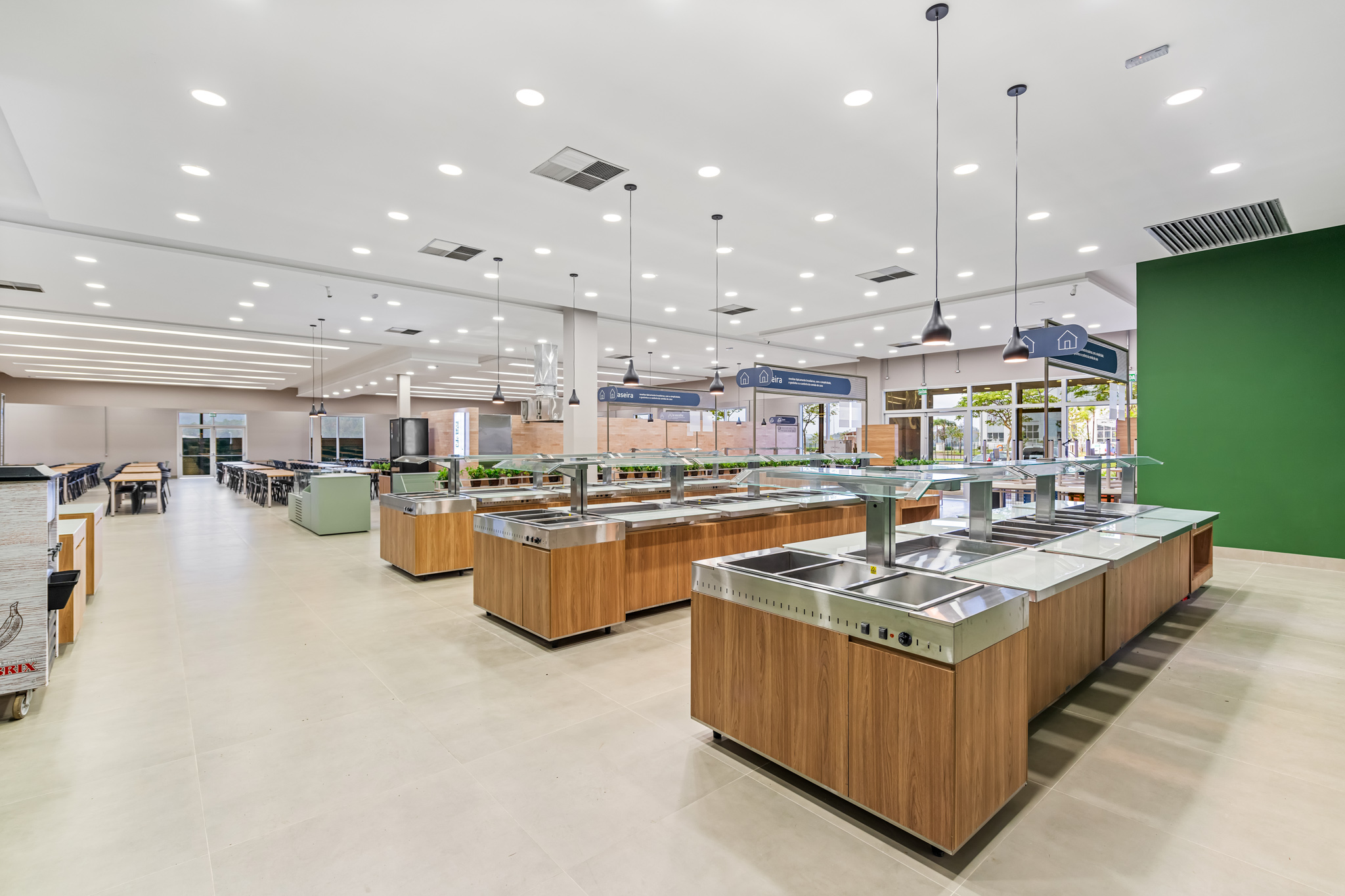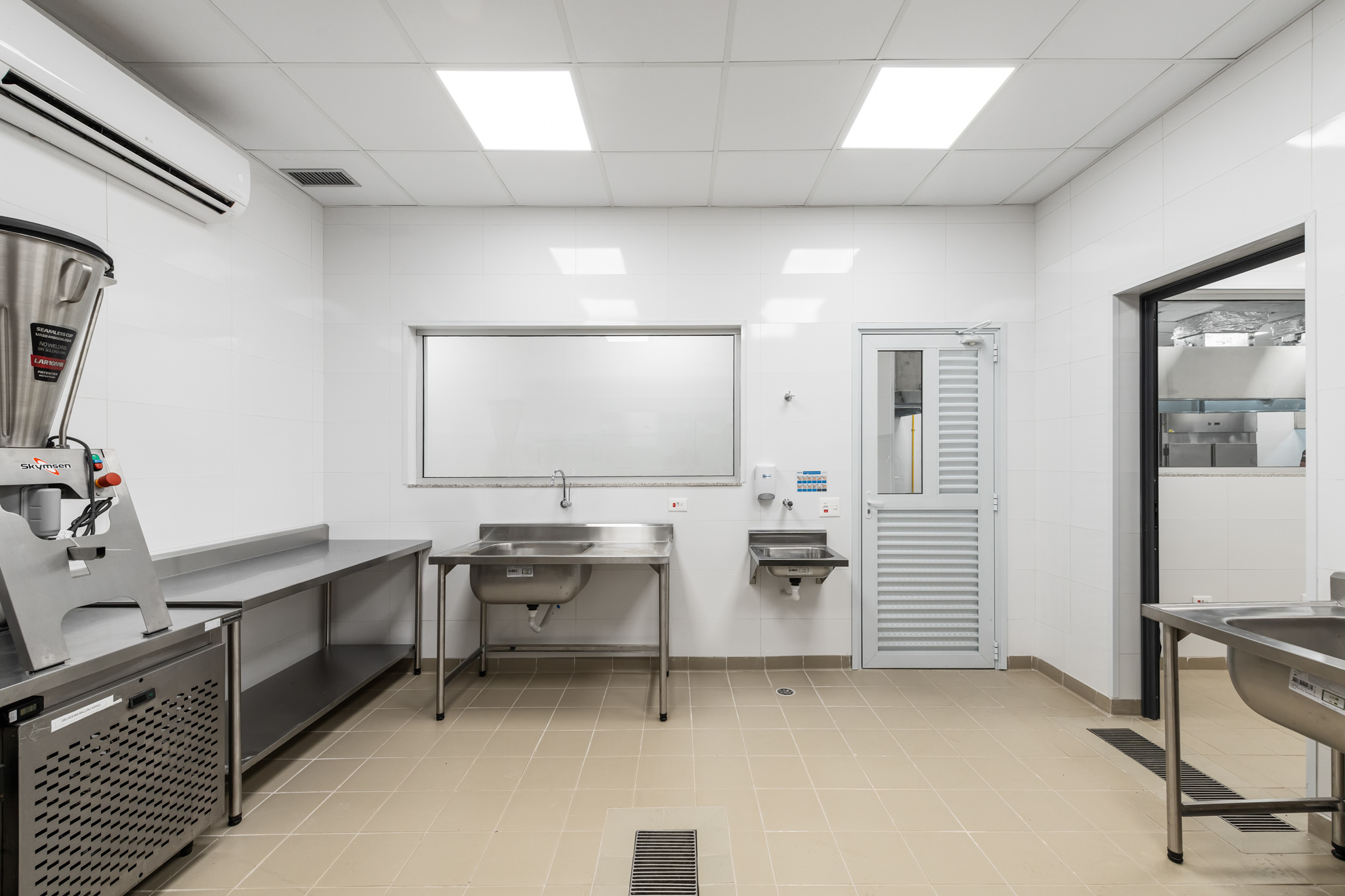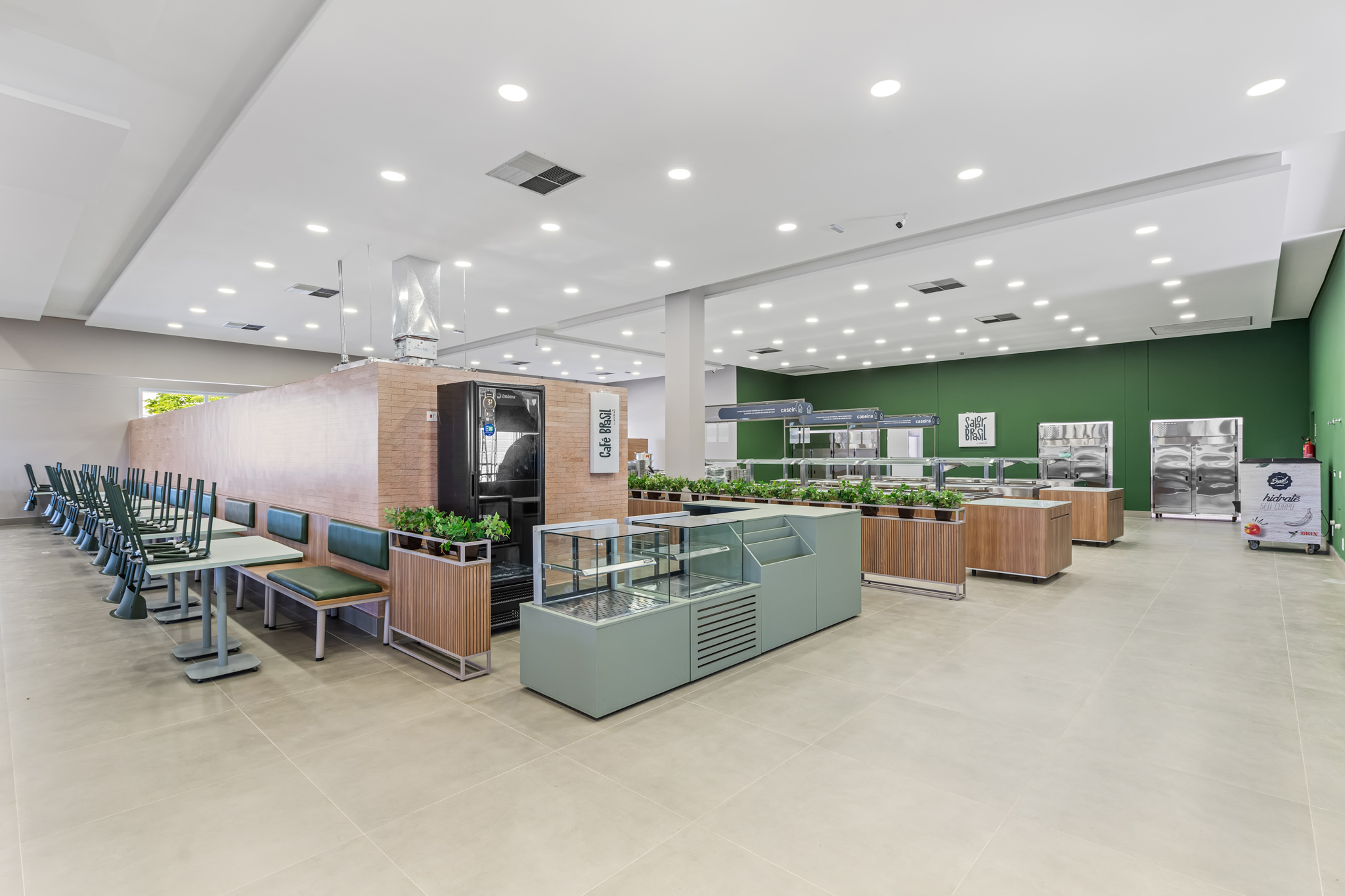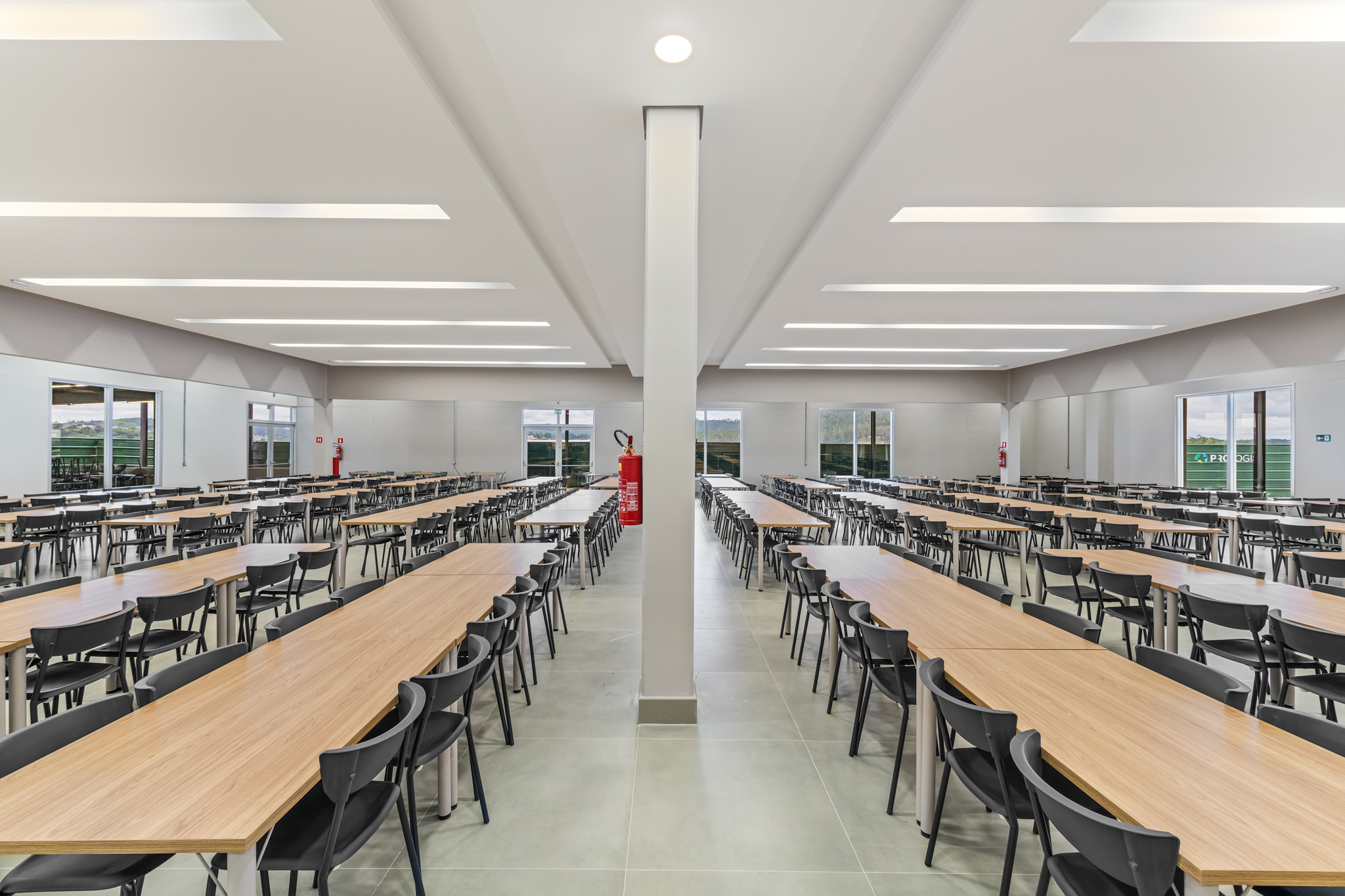 Implantação de refeitório industrial no galpão da Prologis, em Cajamar, SP, com foco na continuidade operacional do cliente. Para não impactar a rotina dos colaboradores, foram instalados contêineres provisórios que garantiram o funcionamento das refeições durante toda a execução da obra, assegurando eficiência logística, planejamento estratégico e mínima interferência nas atividades da empresa. O escopo também incluiu a execução completa do paisagismo da área externa.